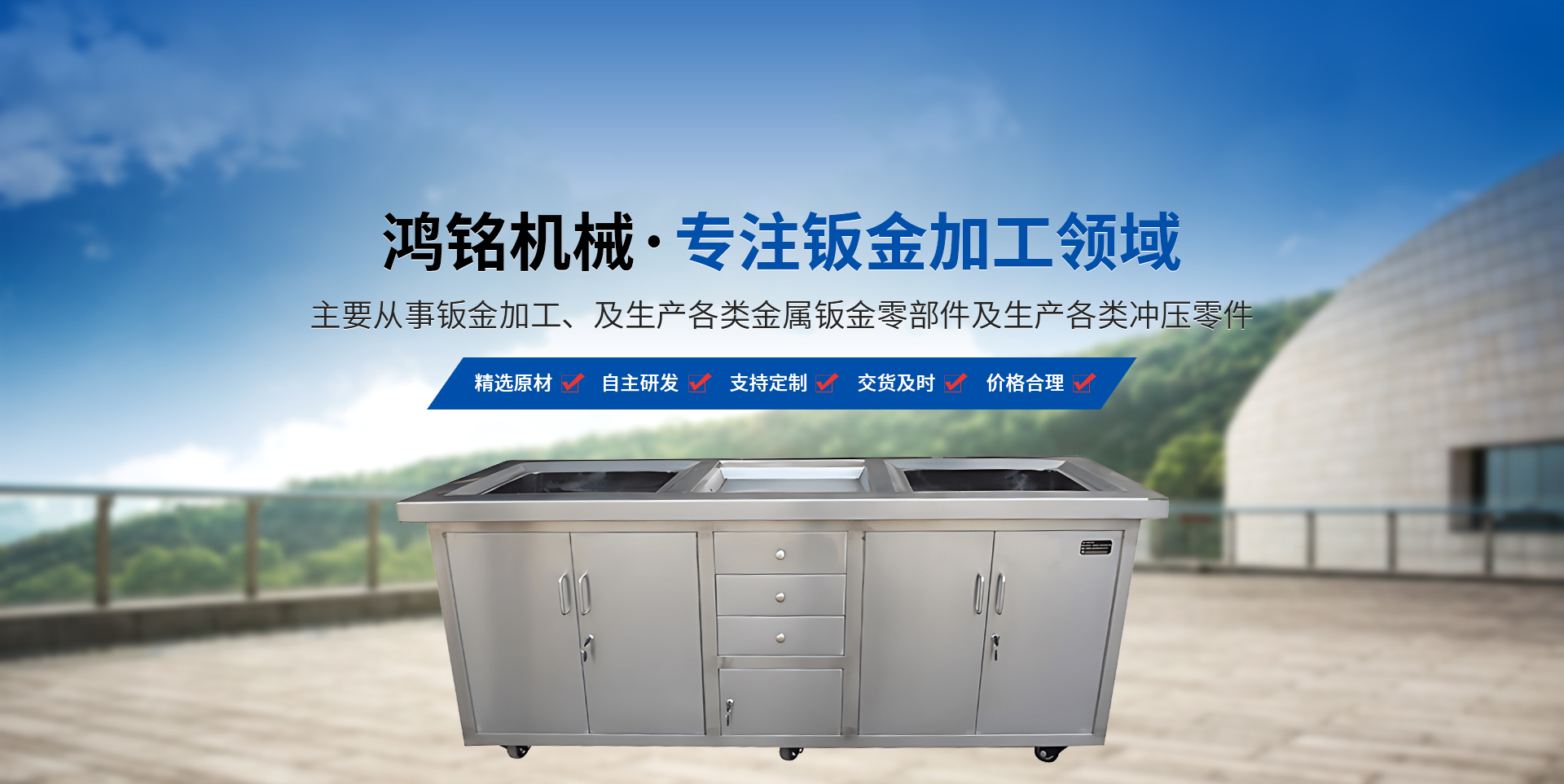 新鄉市鴻銘機械有限公司成立于2009年,占地面積8000平方米,位于新鄉市衛(wèi)濱區(qū)南環(huán)路,地理位置優(yōu)越,交通便利。 本公司設備為德國進口激光切割機,揚力400T折彎機,揚力沖床等設備。主要從事鈑金加工、及生產各類金屬鈑金零部件及生產各類沖壓零件?! 」鹃L期與國內外大型企業(yè)合作深受新老客戶的贊賞,同時公司對外承接各類鈑金加工業(yè)務(標準鈑金件與非標鈑金件),先后為多家知名企業(yè)配套加工鈑金,公司也可根據客戶的需要代為設計,尤其對精度、外觀要求高的產品有獨到的生產經驗。 我們本著"科學管理、全員參與、持續(xù)改進、滿足客戶"的質量方針來生產我們的每一件產品。為了在市場競爭中立于不敗之地,公司以質量求生存,以設備保精度。歡迎新老客戶到本公司實地考察。  本企業(yè)建立以來,以"質量保證,信譽保證,交貨及時,價格合理"為宗旨,贏得了客戶的一致好評。面對市場經濟的挑戰(zhàn),公司將以產品和服務參與市場競爭,為廣大客戶提供鈑金加工平臺。